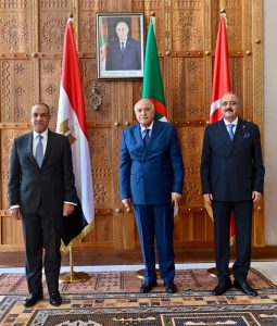 الجزائر – احتضنت الجزائر، اليوم، اجتماعًا لوزراء خارجية الجزائر وتونس ومصر في إطار آلية دول الجوار الثلاثية بشأن ليبيا، في سياق الجهود المستمرة لتعزيز التشاور والتنسيق بين الدول الثلاث، وتوحيد الرؤى إزاء تطورات الأزمة الليبية ومسارات تسويتها السياسية.