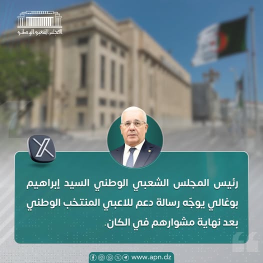 وأشار السيد بوغالي في رسالته إلى أن الخسارة التي تعرض لها المنتخب لا تقلل أبداً من مكانته العالية لدى الشعب الجزائري، مؤكداً على التزامه الشخصي ووقوف الأمة الجزائرية دائماً وبشكل مطلق خلف لاعبي منتخبها الوطني. كما تضمنت الرسالة تشجيعاً للفريق على مواصلة العمل والجهد في المستقبل واستخلاص الدروس من هذه المشاركة، من أجل تحقيق نتائج أفضل في الاستحقاقات القادمة.