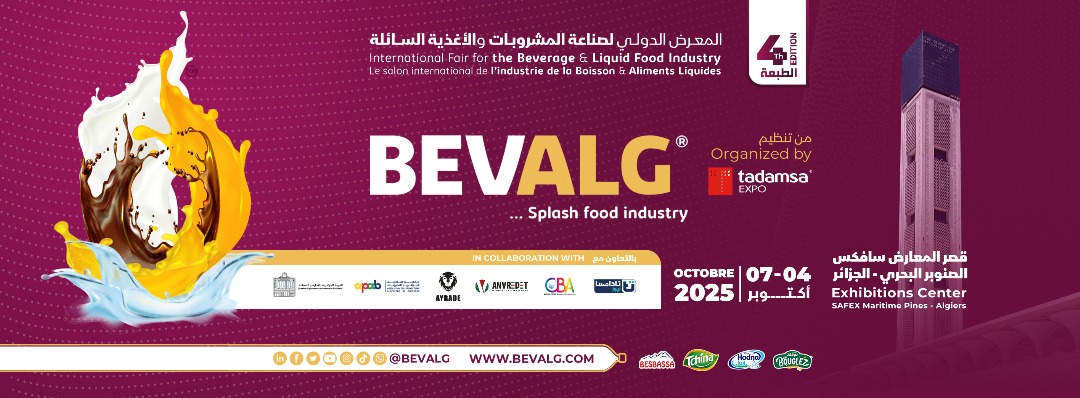 تعود الطبعة الرابعة للمعرض الدولي لصناعة المشروبات والأغذية السائلة “بيفالج” (BEVALG) من 4 إلى 7 أكتوبر 2025 بقصر المعارض – صفاكس، جناح القصبة، لترسّخ مكانتها كموعد قارّي مرجعي يواكب التحولات الكبرى في الصناعة الغذائية، ويجسّد الرهانات الوطنية في الأمن الغذائي وحماية القدرة الشرائية وتنافسية المنتج الجزائري.