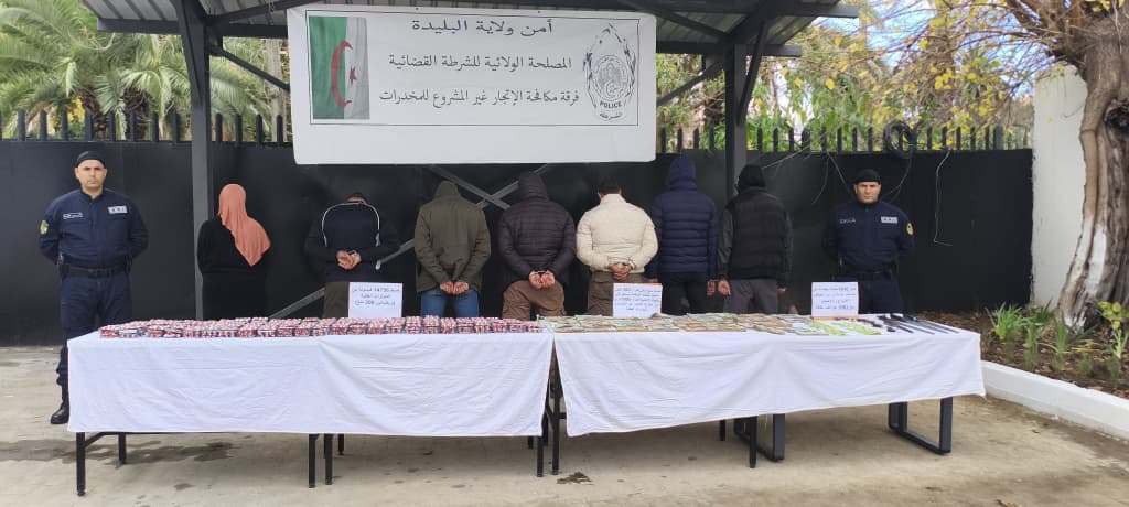 تمكنت عناصر فرقة مكافحة الإتجار غير المشروع بالمخدرات بالمصلحة الولائية للشرطة القضائية لأمن ولاية البليدة من الإطاحة بشبكة إجرامية منظمة تتكون من 07 أشخاص، بينهم امرأة، تتراوح أعمارهم بين 27 و55 سنة، بعضهم من ذوي السوابق القضائية.