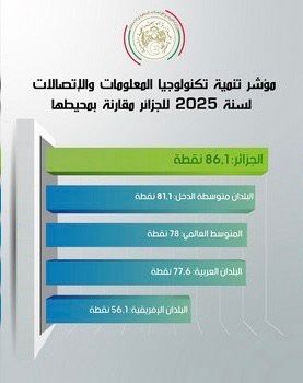حققت الجزائر تقدّمًا لافتًا في التصنيف العالمي الصادر عن الاتحاد الدولي للاتصالات (UIT) لشهر جوان 2025، حيث ارتقت بـ15 مرتبة دفعة واحدة في مؤشر تنمية تكنولوجيات الإعلام والاتصال (IDI)، لتستقر في المركز 74 عالميًا.