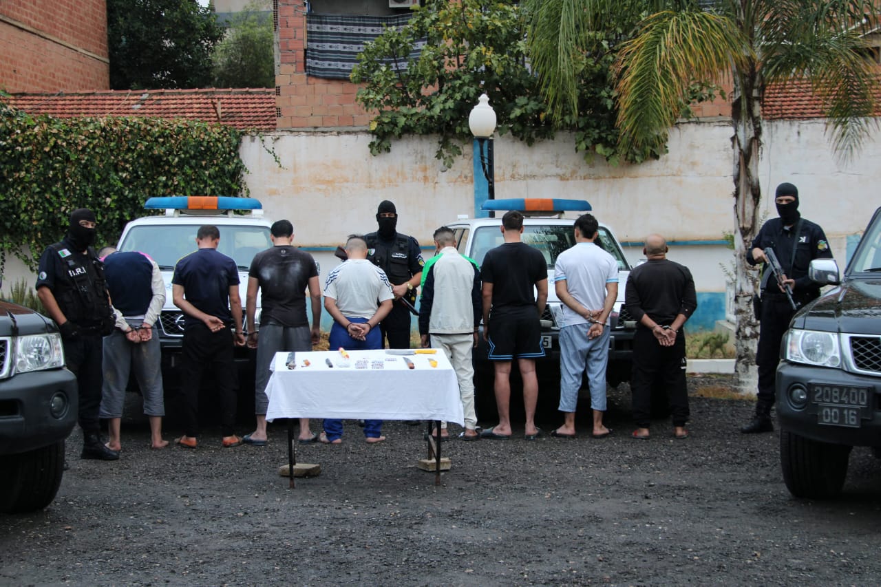 وقد أسفرت المداهمة عن حجز عدد من الأسلحة البيضاء من مختلف الأنواع والأحجام، إلى جانب أقراص مهلوسة، فيما تم تنفيذ أذونات تفتيش وأوامر بالقبض بالتنسيق مع النيابة المختصة، وإنجاز ملفات قضائية في حق المشتبه فيهم وتقديمهم أمام العدالة بتهم تتعلق بتكوين عصابات أحياء وتهديد الأمن العام.