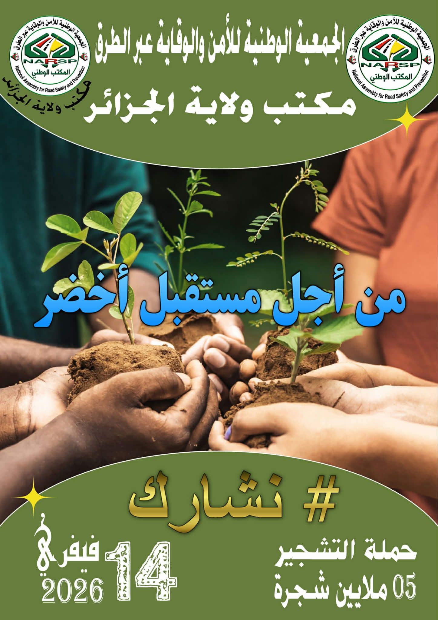 في إطار ترسيخ ثقافة الوعي البيئي وتعزيز المسؤولية المجتمعية، تعتزم Narsp Alger تنظيم مبادرة بيئية مميزة يوم 14 فيفري القادم، تحت شعار: من أجل مستقبل أخضر، وذلك بهدف المساهمة الفعلية في حماية البيئة ودعم مسار التنمية المستدامة.