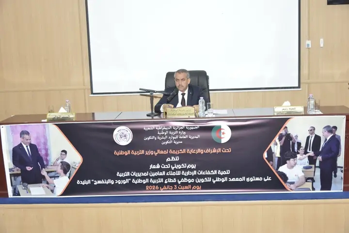 أشرف وزير التربية الوطنية، الدكتور محمد صغير سعداوي، صبيحة اليوم السبت 03 جانفي 2026، على انطلاق فعاليات اليوم التكويني المخصص للسادة الأمناء العامين لمديريات التربية، والمنظم تحت عنوان: «تنمية الكفاءات الإدارية للأمناء العامين لمديريات التربية»، وذلك على مستوى المعهد الوطني لتكوين موظفي قطاع التربية الوطنية بولاية البليدة.